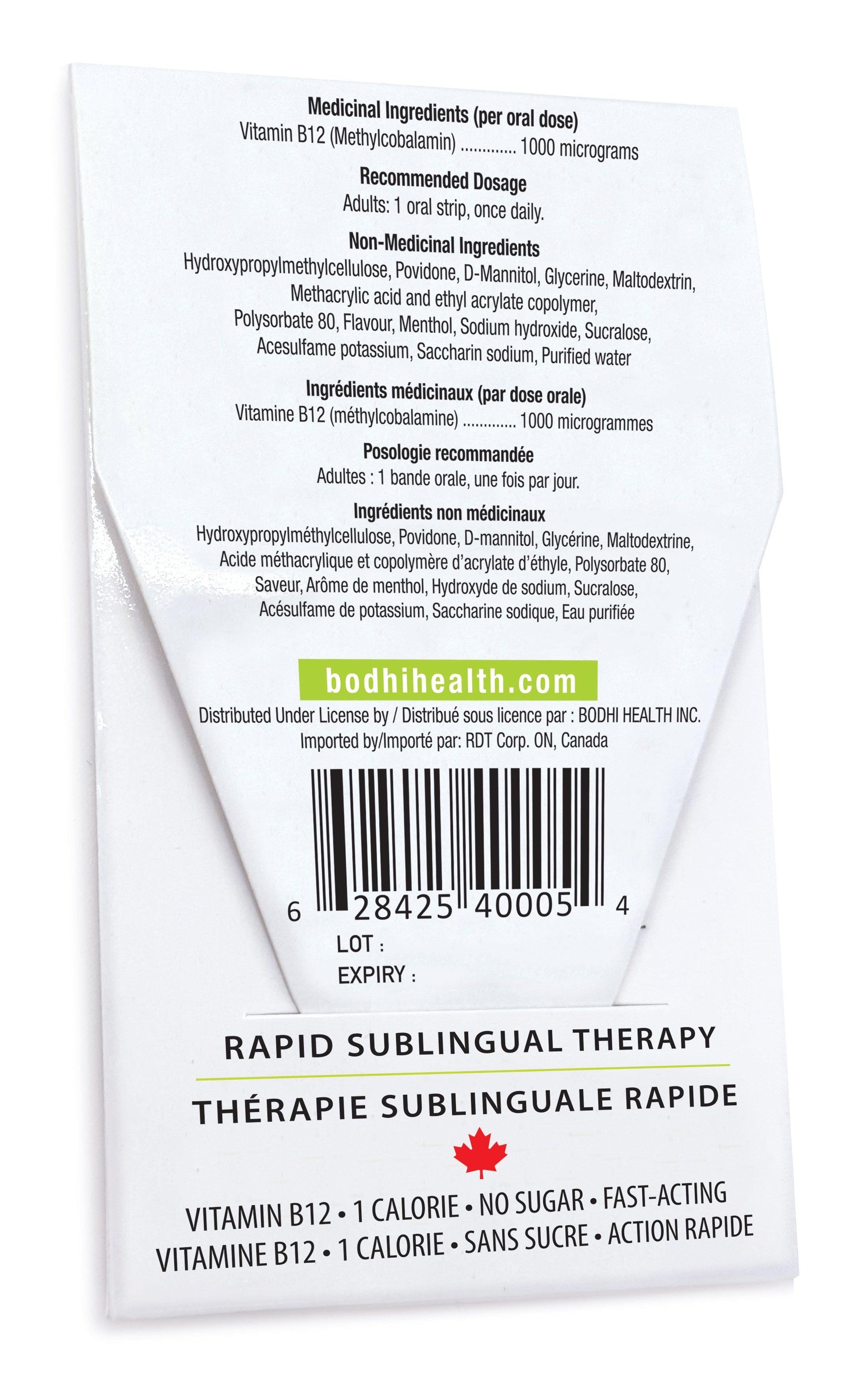 The daily use of Bodhi Health’s Sublingual B12 is the natural solution to prevent a decline in B12 status in these cases, as our Vitamin B12 strip is quickly absorbed (usually less than one minute) under the tongue directly into the bloodstream, bypassing the need for intrinsic factor.